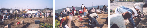 満開を迎えた4月下旬。だれもが一万本の迫力に圧倒された。赤、黄、ピンク、目に飛びこんで来る鮮やかな色のかたまり、花の香り。「これはすごいね!」と感嘆の声が上がる。花さか倶楽部では、地域の人の協力に感謝の気持を込めてチューリップまつりを開催。そして開花後、好きなだけ持って帰ってもらう球根掘り起こし大会をして、すべての作業が終了。初めての経験で恐いもの知らずとは言え、よくやりましたよ、スタッフの皆さん。
